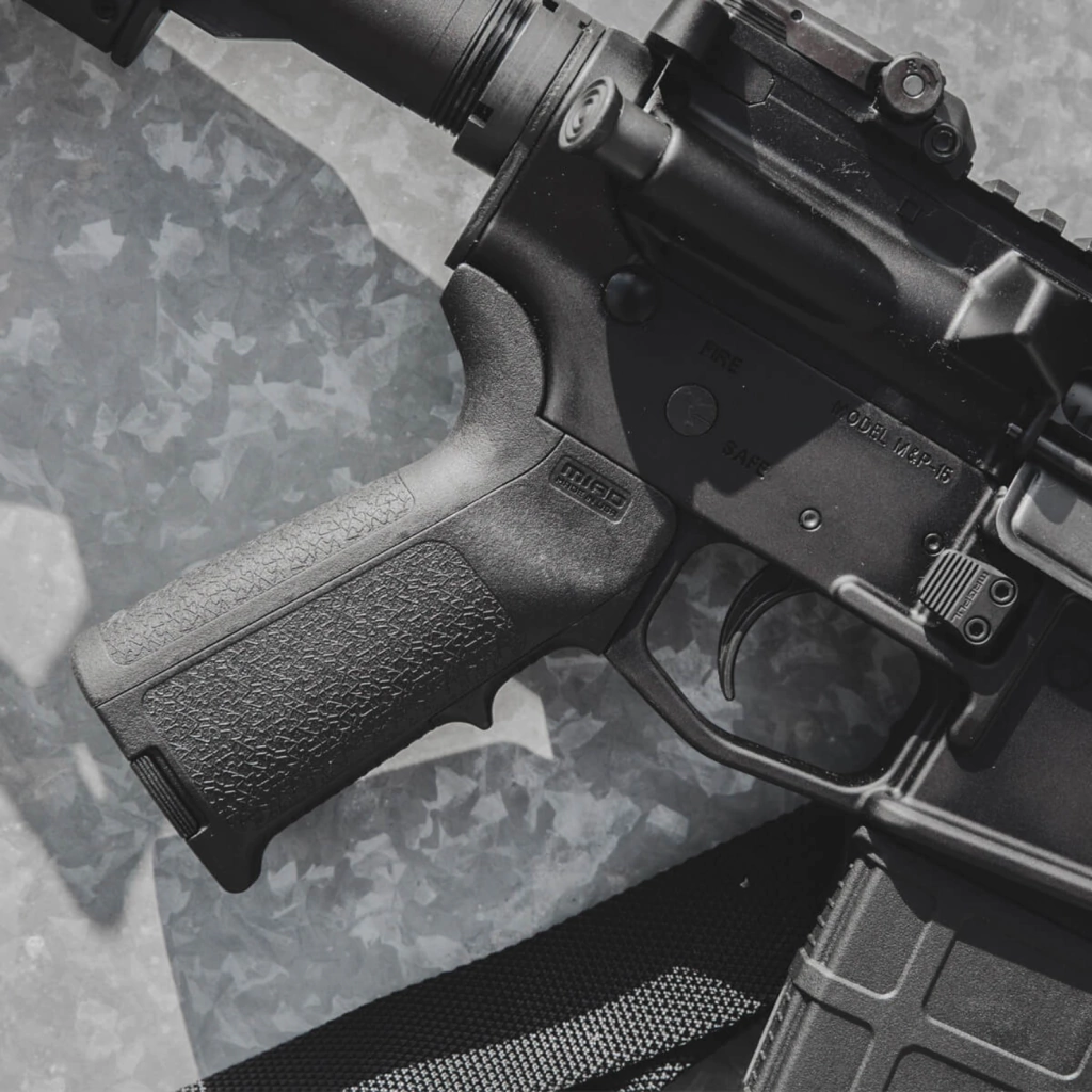 O MIAD Gen 1.1 apresenta uma textura agressiva que proporciona controle positivo da arma, além de uma atualização na retenção da alça. Também é compatível com todos os núcleos de grip Magpul, atendendo a várias necessidades de armazenamento.