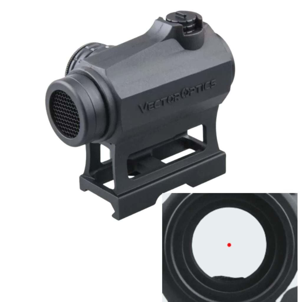 Eleve seu desempenho em tiro com o Red Dot Maverick 1x22 da Vector Optics. Este visor óptico de alta qualidade foi projetado para atiradores que buscam precisão e confiabilidade em cada disparo.